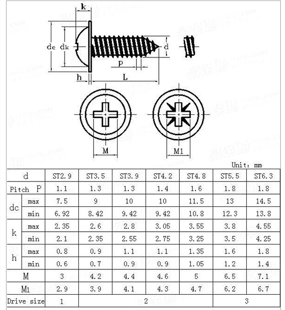 盘头不锈钢自攻螺钉规格有标准的以及非标准的。非标准的规格不好确定,一般都是根据客户的要求才能确定的。Special Screw China螺丝厂家给出了下面的这些标准的盘头不锈钢自攻螺钉规格,以供参考。