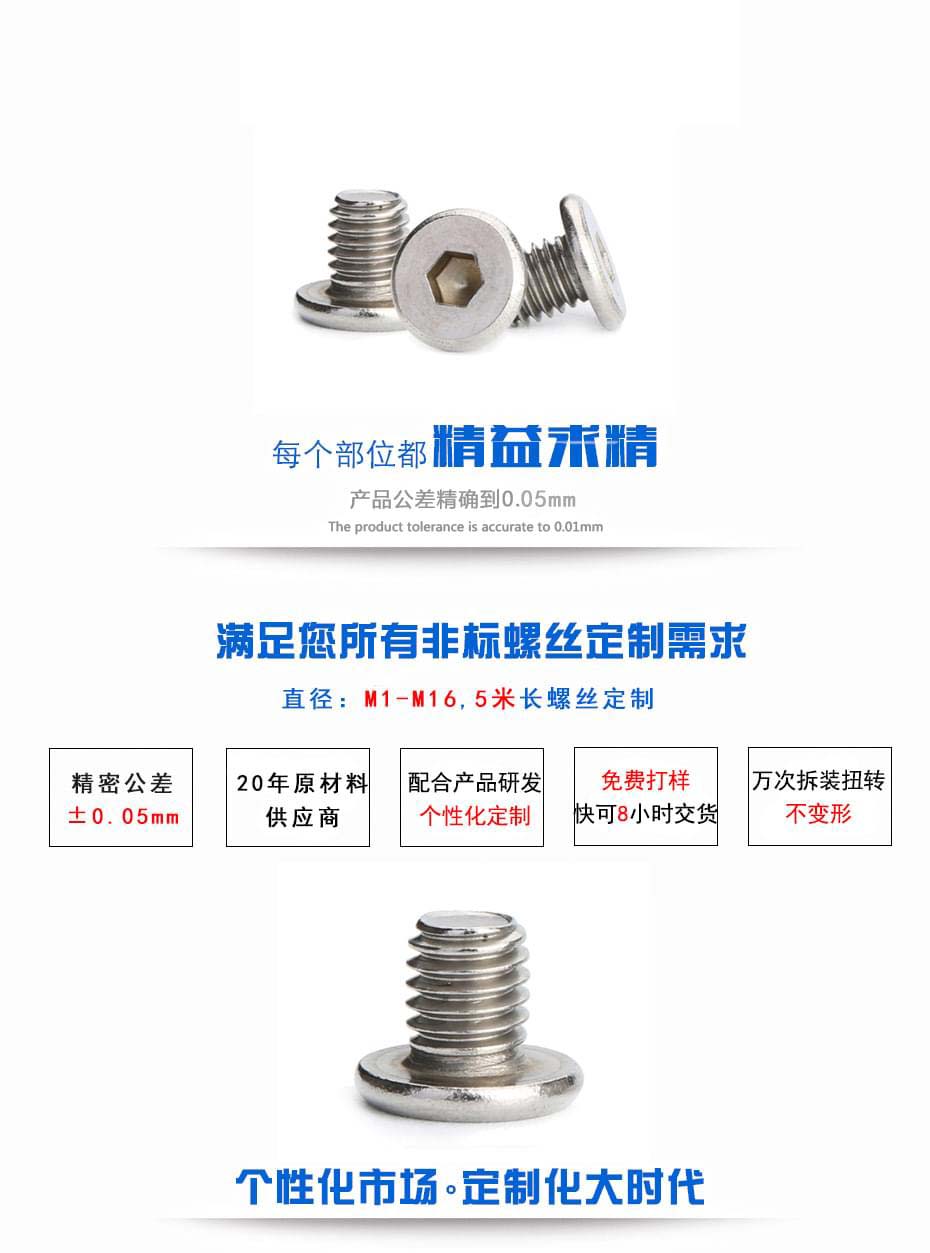 热门关键词:非标紧固件无人机螺丝SS screws梅花螺丝六角螺丝316Stainless steel screws碳钢螺丝加长螺丝