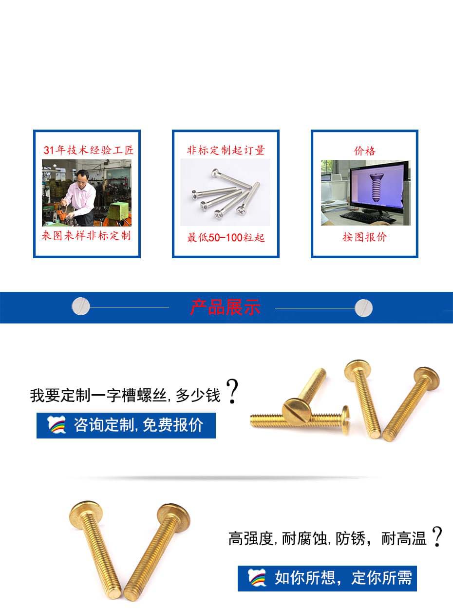 产品详情:黄铜一字螺丝,来图来样非标定制